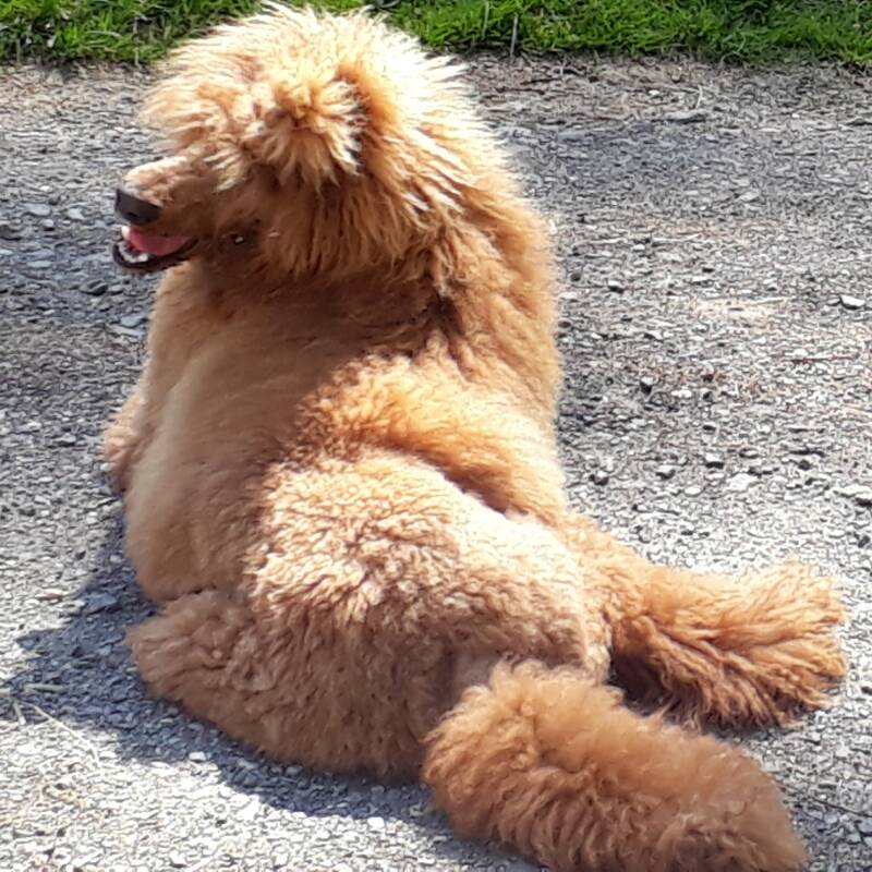 Peppi ist mein Bewacher von Haus und Hof. Er ist Fremden gegenüber zurückhaltend, wird aber nach ein paar Streicheleinheiten schnell zum absoluten Schmusebären. Natürlich ist er pudeltypisch temperamentvoll, stets freundlich und wie für die falbfarbenen Pudel charakteristisch - sensibel. Er liebt es, zu apportieren, genauso wie spazieren gehen und v.a. auch die Hundeschule. Er hat die BH-VT Prüfung sowie die BGH 1. Er findet Mantrailing genauso toll wie Obidience.